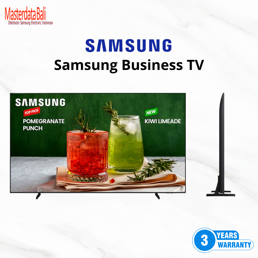 4K UHD (3840 × 2160),kecerahan sekitar 300 nits, Tizen™ Smart TV, HDR10+, 3× HDMI, USB, LAN, Wi-Fi, dan Bluetooth,operasi hingga 16 jam per hari (16/7), SmartThings Pro, Youtube, Netflix